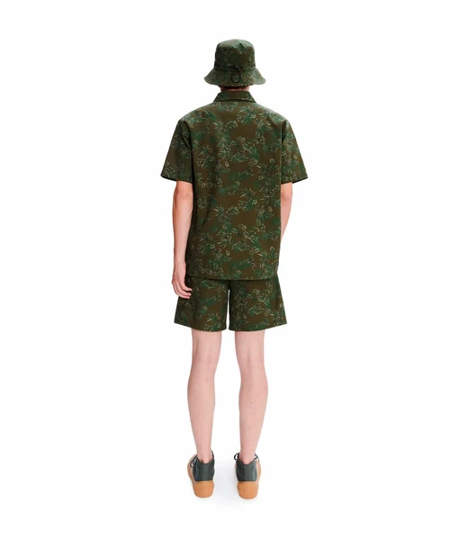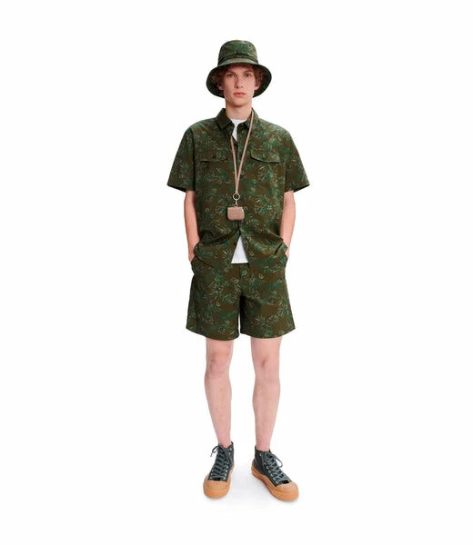 Loose fit short-sleeve shirt with khaki Hawaiian print. Loose fit. Summer overshirt spirit. Two chest pockets. Matthieu is 188 cm tall and is wearing size M. This model fits true to size; choose your usual size. 100% Cotton. Made in Tunisia. Machine wash 30° C recommended. Wash inside-out.