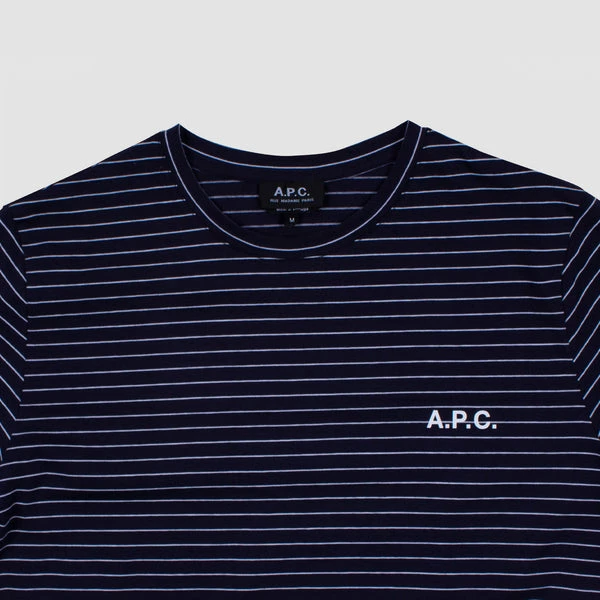 Classic stripe T-Shirt from A.P.C. Fits true to size, relaxed fit. COMPOSITION: 100% cotton. CARE: Machine wash PLACE OF ORIGIN: EU Mid-weight striped cotton jersey White logo