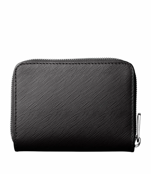 Combination coin purse and cardholder in embossed black leather. Combination coin purse and cardholder in smooth embossed vegetable-tanned leather. The card compartment closes with a snap button. 4 multifunction pockets. 3 card slots. 1 banknote pocket. Gusseted zip coin pocket. Embossed A.P.C. logo. Cotton lining. Dimensions: 12 x 10 x 2.5 cm. Credit card format cardholder. 100% leather. Made in Spain. In case of stains or rain, dry directly with a soft cloth and wash with soapy or micellar water. If the stains persist, apply a leather cream.