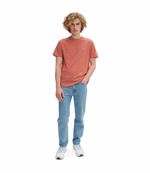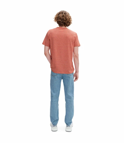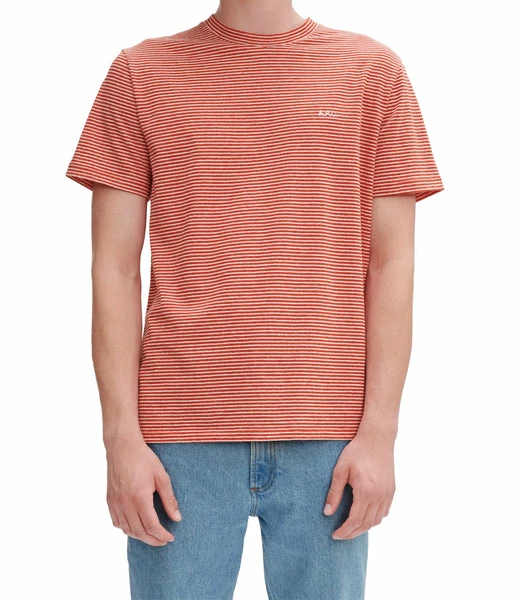 Striped T-shirt with embroidered logo. Straight cut. A.P.C. logo embroidered over the heart. Soft cotton. Antoine is 184 cm tall and is wearing size M. This model fits true to size; choose your usual size. 65% Linen. 30% Cotton. 5% Elastane. Made in Turkey. Machine wash 30° C recommended. Wash inside-out.