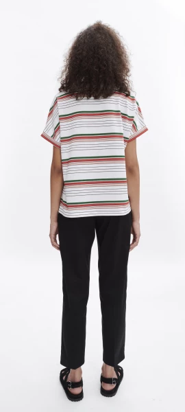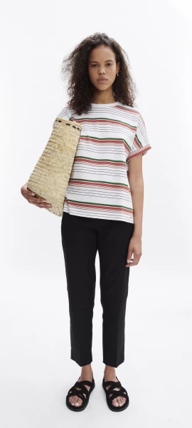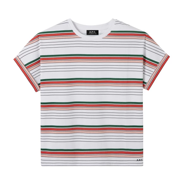 Oversized striped t-shirt. Wide t-shirt with stripe print. Dropped shoulder and wide sleeves. Pretty strong cotton. A.P.C logo at bottom right. Material: 100% cotton. Made in Portugal.