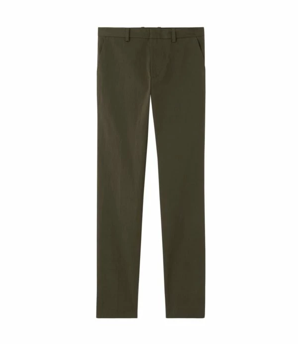 Techno gabardine. Cotton-polyamide blend. Natural wrinkles. Italian manufacture. Straight cut, slightly tapered. zipper. A hidden hook and button on the inside of the waistband. Attached waistband with belt loops. French bags. Darts and a buttoned piped pocket on the back. Invisible hem.