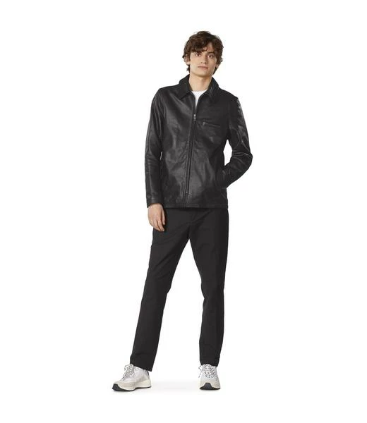Cowhide leather. Straight cut. Classic topstitched collar. Zip closure. Double-piped zip chest pocket. Long set-in sleeves. On-seam side pockets. Double-piped inside pocket. Straight hem. Padded, quilted polyester lining.