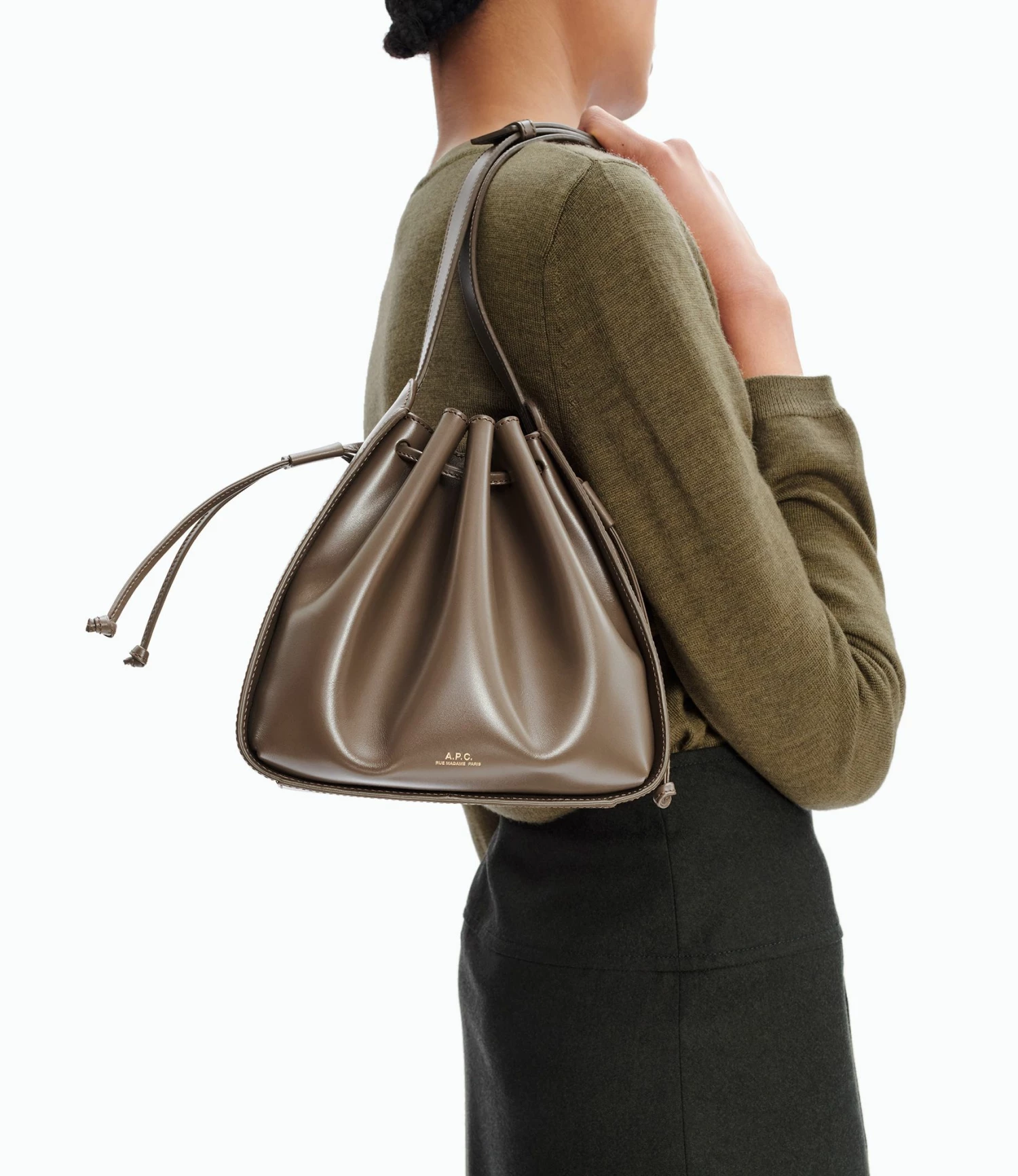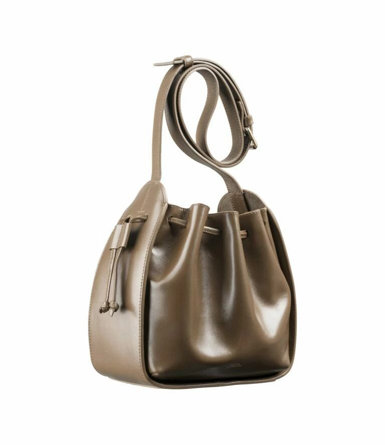 Kalbsglattleder. Godet-Form. Verstellbarer Umhängeriemen aus Leder. Über Kreuz oder an der Schulter zu tragen. Zwei Akkordeon-Falten. Kordelverschluss. Goldfarbenes “A.P.C. Rue Madame” Logo vorne eingestanzt. Innenfutter aus Veloursleder. Eine aufgesetzte Tasche im Inneren. Umhängeriemen: bis 50 cm.