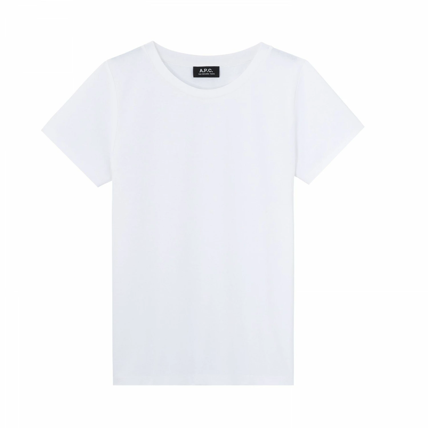 Feiner Baumwoll-Jersey. Weiches und fließendes Material Gerade geschnitten. Weiter Rundhalsausschnitt mit Bündchen. Gepaspelte Innennaht am Nacken. Kurze eingesetzte Ärmel. A.P.C. Logo in gleichfarbigem Garn unten links an der Rückseite gestickt. Schmaler abgesteppter Saum. Gerader Saum. Farbe: weiß.