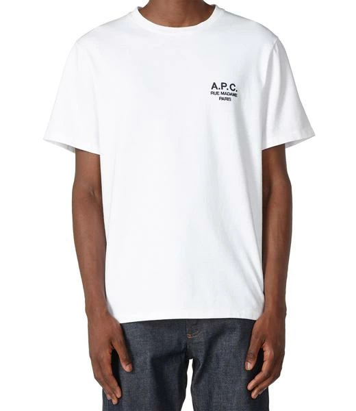 Crisp jersey. Rounded neckline. ‘A.P.C. ITEM 0001 – 39 RUE MADAME’ logo on chest. Short set-in sleeves. Topstitched cuffs and hem. Straight hem. 100% Cotton. The model is 6′ 2″ tall and is wearing size M.