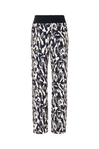 Cut to a relaxed fit, the Aiden pants from Stine Goya have a straight leg, elasticated waist and are adorned with an all over abstract pattern. The cream and navy tones will ensure they slot seamlessly into your wardrobe as an easy-to-style piece, whilst the recycled polyester fabric is lightweight and crease resistant; perfect for when you’re on the move. Pair with the matching Cyrene blouse for head-to-toe divineness. – Thick ribbed elasticated waist band – Lightweight fabric with crepe texture – Slight flare – Unlined XS S M L Waist 1/2 relaxed (cm) 32 32.5 33 33.5 Inside leg (cm) 79 80 81 82 96% Recycled Polyester, 4% ElastaneMachine wash cold. Do not tumble dry. Made in China SG3923 1569