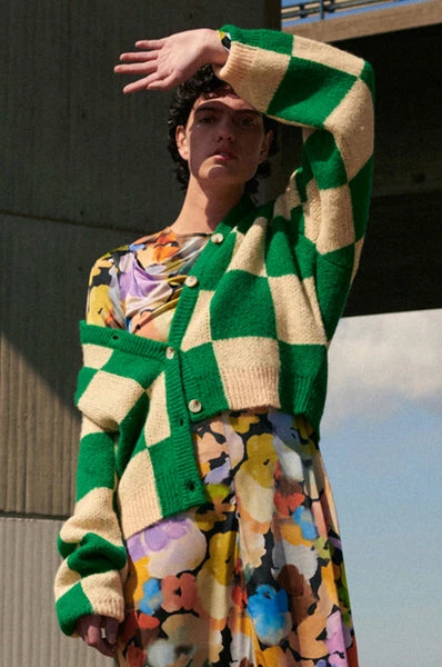 The Ash Cardigan in Green Cream Melange is a button up knitted sweater with simple checked pattern, ribbed hems and oversized long sleeves with cuffs. This slouchy number looks great thrown on with jeans or over dresses and as the pattern is so bold, you can also mix and match with florals and other ditsy patterns. .tg {border-collapse:collapse;border-spacing:0;} .tg td{border-color:black;border-style:solid;border-width:1px;font-family:Arial, sans-serif;font-size:14px; overflow:hidden;padding:10px 5px;word-break:normal;} .tg th{border-color:black;border-style:solid;border-width:1px;font-family:Arial, sans-serif;font-size:14px; font-weight:normal;overflow:hidden;padding:10px 5px;word-break:normal;} .tg .tg-bvxb{background-color:#ffffff;border-color:#000000;color:#ffffff;text-align:center;vertical-align:top} .tg .tg-c3ow{border-color:inherit;text-align:center;vertical-align:top} .tg .tg-7btt{border-color:inherit;font-weight:bold;text-align:center;vertical-align:top} .tg .tg-fymr{border-color:inherit;font-weight:bold;text-align:left;vertical-align:top} XS S M L Pit to Pit (cm) 56 58 60 62 Sleeve length (cm) 52 53 54 55 Length (cm) 51 52 53 53 45% Acrylic, 35% Polyamide, 20% Alpaca Hand Wash Made in Italy SG4324 3058