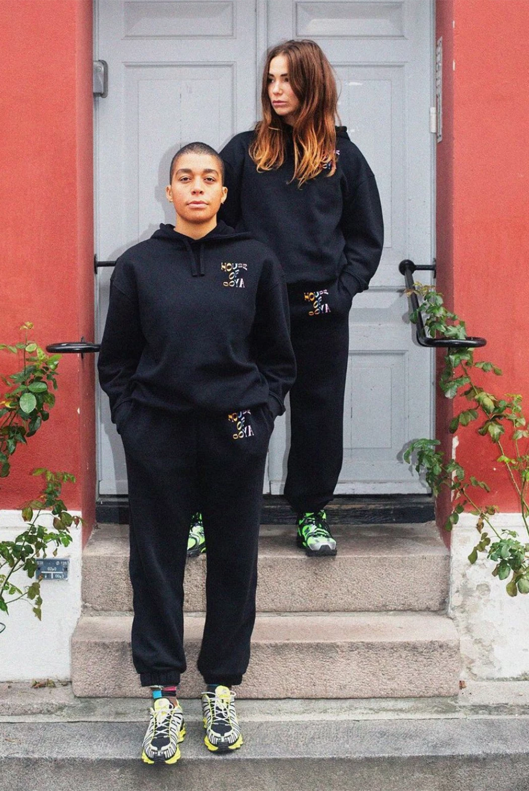 Zaza Track Pants with House of Goya. Made from a soft organic cotton with a brushed inside. Cut for a relaxed fit with tapered legs, side pockets, elasticated waist and cuffs. Detailed with the House of Goya logo at front.
