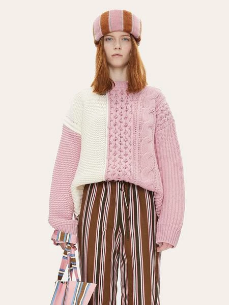 In delectable nougat colours the Blanci Sweater by Stine Goya is an essential piece of knitwear for your wardrobe. Featuring a cable design in a soft wool blend, this jumper is knitted to a relaxed fit with drops shoulders and ribbed neck, cuffs and hem. Pair with your staple winter jeans and boots for an ultra cosy and colourful outfit.