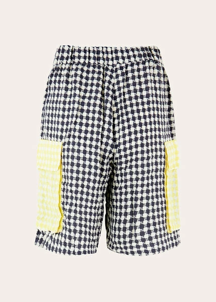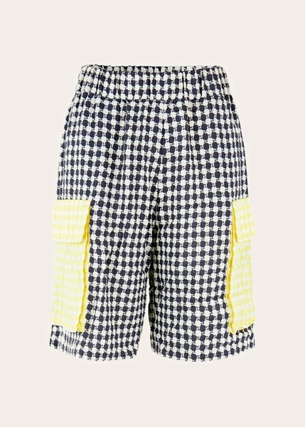 STINE GOYA Camila Shorts – Space Check Camila Shorts in Space Check. Wide leg knee length shorts with elasticated high waist. All over houndstooth pattern and large patch pockets. Pair with the Adela Top in Space Check and the Gurly Boots in Polido Creme. LENZING™ ECOVERO™ Viscose fibres are a green alternative to regular Viscose, generating significantly lower emissions and water impact. These fibres are derived from sustainable wood sources and are certified with the recognized EU Ecolabel. They meet high environmental standards throughout their full lifecycle – from raw material extraction to production, distribution and disposal. For the Pre-Fall 2022 collection, Stine Goya offers a celebration of authenticity and unapologetic self-expression. Inspired by American artist Kerry James Marshall, YOUR FREEDOM – MY LOVE is enriched with modern adaptations of timeless shapes and styles through bold patterns, bright colours, and a fierce sense of individuality. SARA IS 174 CM TALL AND WEARS A SIZE XS. MEASUREMENTS FOR SIZE SMALL WAIST 74 CM / 103 CM HIP 114 CM THIGH 74 CM BOTTOM WIDTH 66 CM FULL LENGTH 56 CM 50% LENZING™ ECOVERO™ VISCOSE/50% POLYESTER MACHINE WASH SG4226