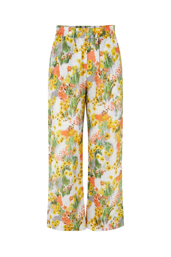 Debra Pants in Artist Canvas Daytime. Relaxed ankle length trousers with subtly flared silhouette. Elasticated waist and detailed floral pattern. Pair with the Summer Blouse in Artist Canvas at Night.