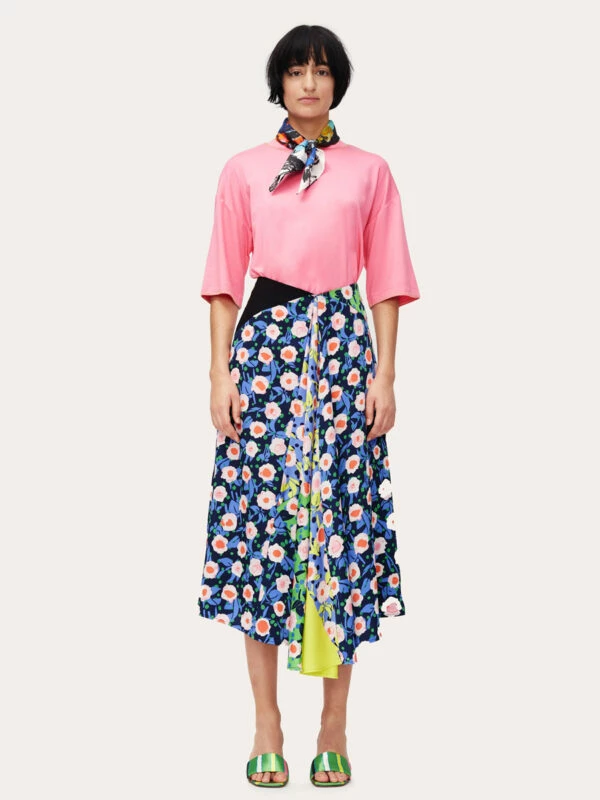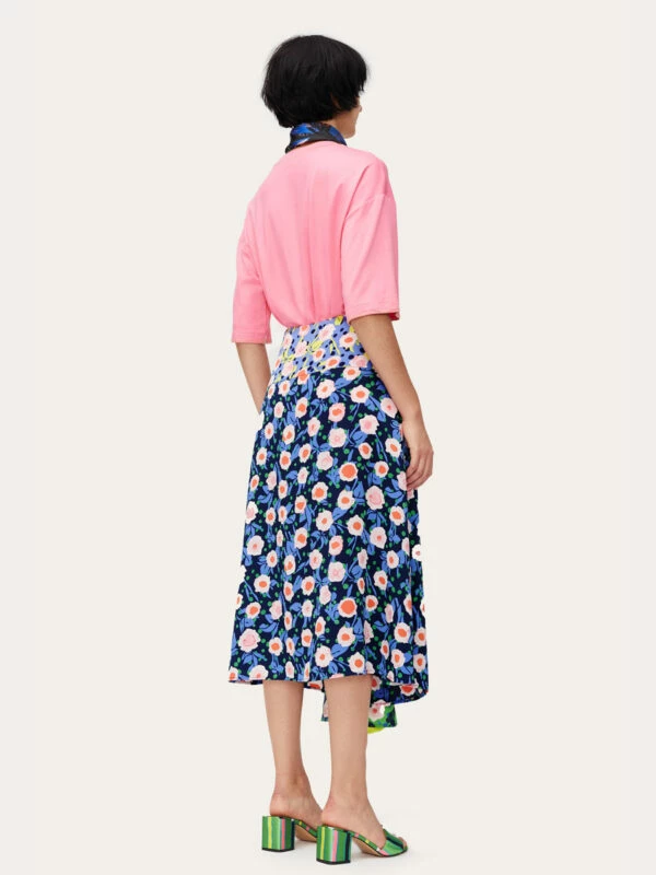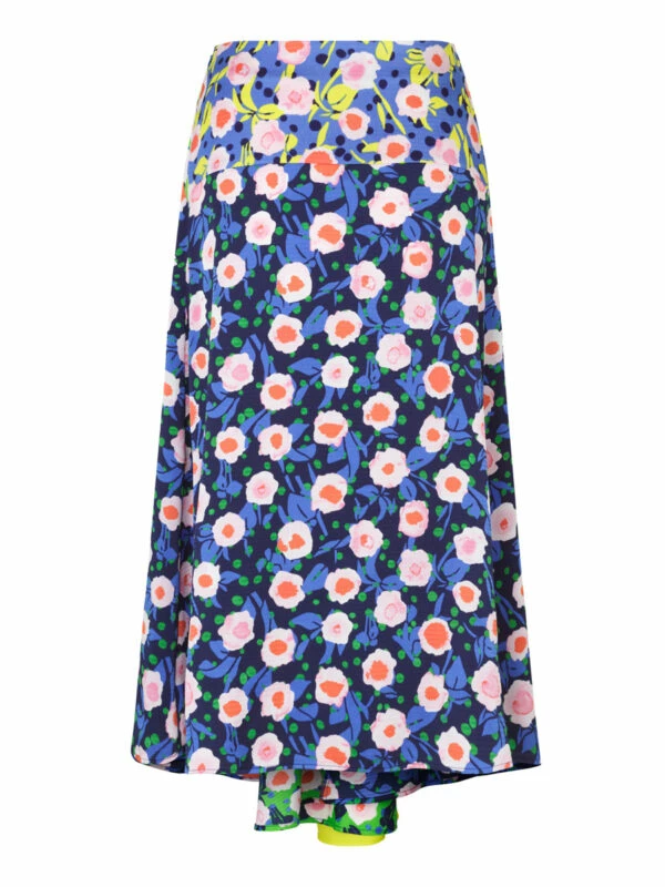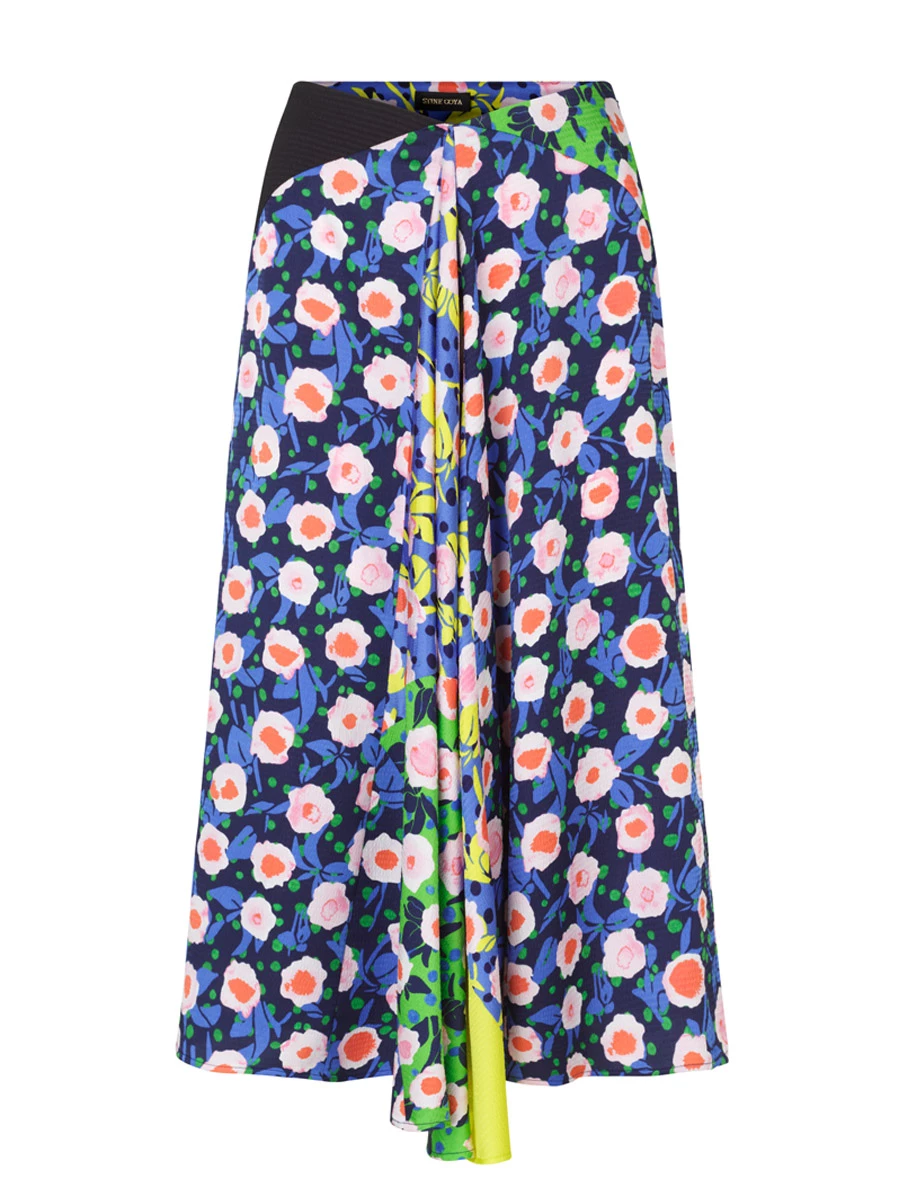 From the Bed to Babylon Collection. This Lilah plisse skirt reimagines floral statement style with its vibrant patchwork of contrasting prints and gathered detail at the front. Made from 100% recycled polyester with all-over print.