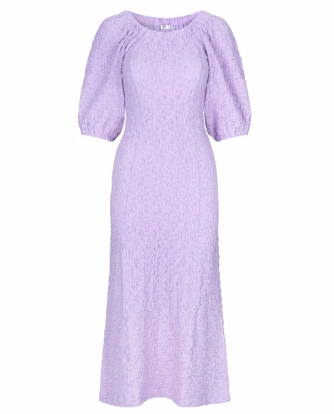 Stine Goya Garance Lilac Dress, a textured lilac occasion dress with elbow length puffed sleeves and an elasticated neckline which can be worn of the shoulder. Falling to the calf in length this pastel coloured slim line midi dress can be worn both to as a Summer party dress or casually with trainers. 70% Cotton, 20% Nylon & 10% Elastane Hand wash Model is 176cm and wears size XS – UK8 Measurements for size small: Chest 88 cm Waist 66 cm Hip 94 cm Bottom width 118 cm Sleeve length (raglan) 35 cm Full length 118 cm XS – UK8, S – UK10, M – UK12, L – UK14 Stine Goya is very generously sized so we would recommend sizing down.