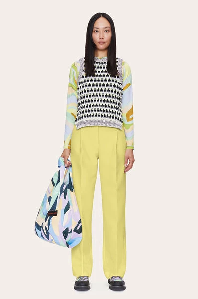 Cut from a soft cotton blend, the Greta vest is the perfect way to add a little bit of extra warmth to your look. In a slim fit with a high crew neck and ribbed trims, it features a bold geometric design. Layer over a flowing block-coloured dress and pair with high-top trainers for whimsical weekend style. – Slim fit – Flattering waistline – Round neckline – 2 side slits -Back hem is slightly longer.