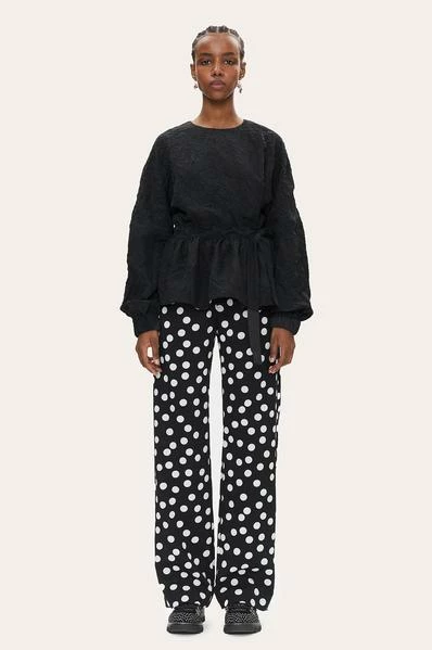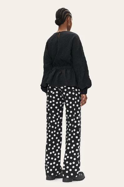 We love a patterend trouser and the Gulcan Pants in Dots Cream are a super easy way to incorporate a little something extra to your legwear options. They are loose fitting pants with a wide, straight leg and drawstring elasticated waist. There are pockets on the back and side. Pair with a black or cream top and you have a super chic outfit ready to go! Model is 174 cm tall and wears a size xs. XS S M L Waist (cm) 32 34 36 38 Hem Width (cm) 26 26 26 26 Total Length (cm) 107 107 108 108 50% Recycled Polyester, 48% Recycled Polyester, 2% Elastane (Recycled polyester is a green alternative to virgin polyester, made from recycled plastics. Making garments from recycled polyester requires less energy, prevents plastic bottles from becoming landfill and produces less pollution.) Made in China Machine Wash SG3926 1028