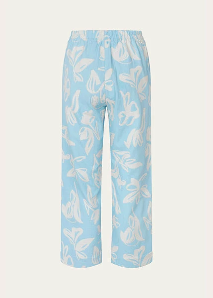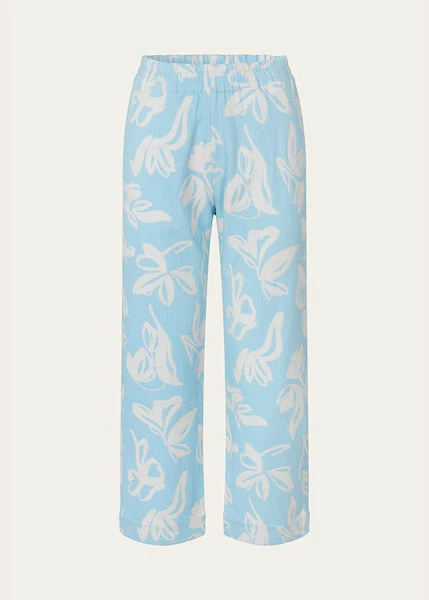 STINE GOYA Isra Trousers – The Life of a Tulip Blue Isra Pants in The Life of a Tulip Blue. Relaxed fit ankle length wide leg pants. Elasticated waistline and side pockets. Pair with the Britney Blouse in The Life of a Tulip Blue and the Vaian Sandals in White. Jiao is 178 cm tall and wears a size xs. Measurements for size small: Waist 72 cm / 98 cm Hip 104 cm Thigh 66 cm Knee 52 cm Bottom width 48 cm Full length 97 cm 52% Polyester/43% Cotton/5% Elastane Machine wash Made in Turkey Style ref: SG4088