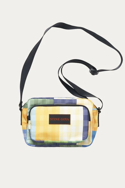 Lotta Bag in Picnic Check. Small squared cross body bag with front pocket and wide adjustable shoulder strap. Recycled Polyester blend. ONE SIZE 60% POLYESTER, 40% RECYCLED POLYESTER MACHINE WASH