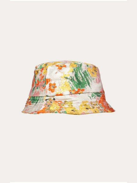 Made from a beautiful floral jacquard fabric, the Merina Bucket Hat by Stine Goya has been crafted to a classic shape with decorative stitching around the brim. Add pattern to your summer ensembles with this must-have accessory. Floral jacquard fabric with metallic thread Stitched brim Available in two sizes Composition: 78% Recycled Polyester, 12% Metallic, 10% Nylon.
