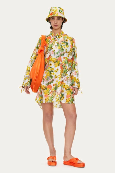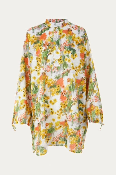 Neva Kleid in Artist Canvas Daytime. Minikleid in 1/4-Länge mit Knopfleiste, Stehkragen, langen Ärmeln zum Umschlagen. Elegantes Blumenmuster. LENZING™ ECOVERO™ Viskosefasern sind eine grüne Alternative zu gewöhnlicher Viskose, die deutlich weniger Emissionen ausstoßen und weniger Wasser verbrauchen. Diese Fasern wurden aus nachhaltigen Holzquellen gewonnen und sind mit dem anerkannten EU Ecolabel zertifiziert. Sie erfüllen hohe Umweltstandards während des gesamten Lebenszyklus – angefangen von der Gewinnung des rohen Materials bis hin zu Produktion, Verteilung und Entsorgung. Für die Pre-Fall-Kollektion 2022 offenbart Stine Goya ein Fest der Authentizität und des unverfälschten Selbstausdrucks. Inspiriert von der amerikanischen Künstlerin Kerry James Marshall, wird YOUR FREEDOM – MY LOVE durch moderne Adaptionen zeitloser Formen und Stile mit gewagten Mustern, leuchtenden Farben und einem ausgeprägten Sinn für Individualität bereichert. 39% TENCEL/34% LENZING™ ECOVERO™ VISKOSE/20% POLYAMID/7% LINEN MASCHINENWÄSCHE