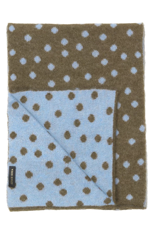 Orphea Scarf in Blue Dots. Oversized rectangular scarf made of a soft wool blend. Simple all over polka-dot pattern.
