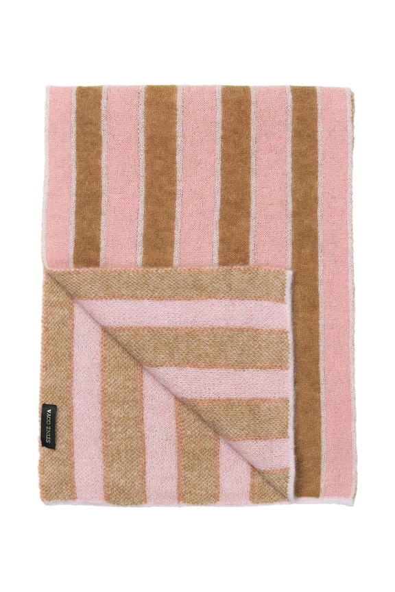 Orphea Scarf in Pink Stripes. Oversized rectangular scarf made of a soft wool blend. Simple all over pattern with thick stripes.