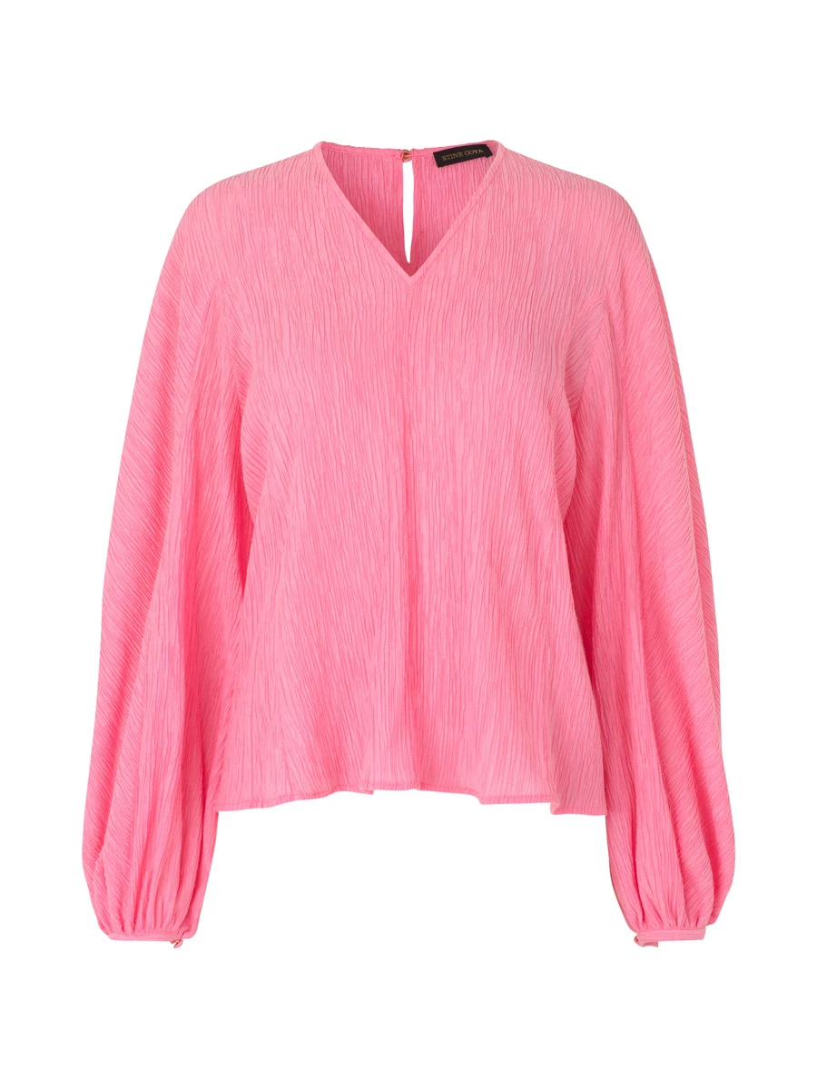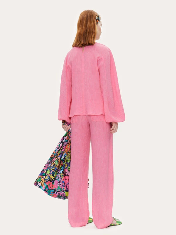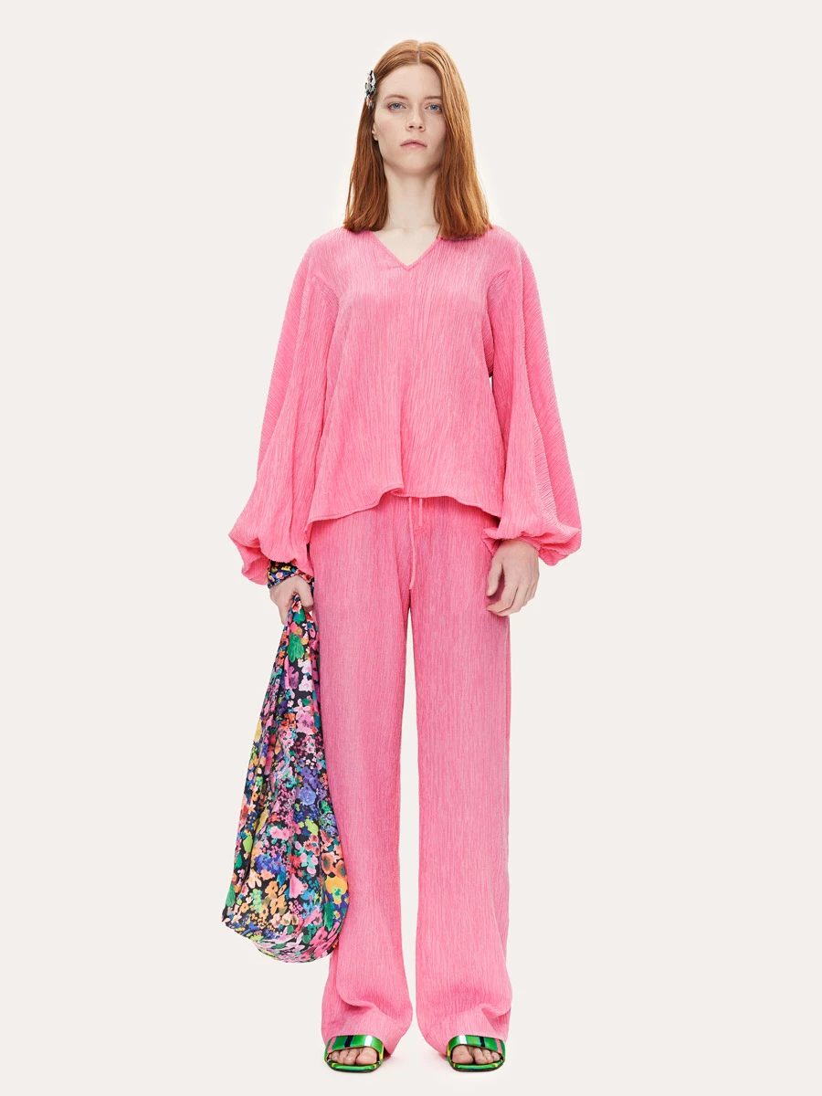 The candy heaven continues with the Ida Blouse in Pink. She’s a loose fit with V-neck opening and long puff sleeves with buttoned cuffs. She’s crafted from a crinkled tencel and is finished with a single button closure on the back. Wears yours with jeans or our Debra trousers for a statement look.