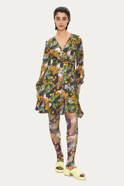 Rania Kleid in Artist Canvas at Night. Klassisches Wickelkleid mit gerafftem Rock, voluminösen langen Ärmeln und aufwändigem Blumenmuster. LENZING™ Lyocellfasern sind bekannt für ihren natürlichen Tragekomfort und ihren umweltverträglichen Herstellungsprozess. Sie bieten Qualität, Leistung und Vielseitigkeit. Einzigartige physikalische Eigenschaften sind für das hohe Zähigkeitsprofil, das Feuchtigkeitsmanagement und die Sanftheit zur Haut verantwortlich. Für die Pre-Fall-Kollektion 2022 offenbart Stine Goya ein Fest der Authentizität und des unverfälschten Selbstausdrucks. Inspiriert von der amerikanischen Künstlerin Kerry James Marshall, wird YOUR FREEDOM – MY LOVE durch moderne Adaptionen zeitloser Formen und Stile mit gewagten Mustern, leuchtenden Farben und einem ausgeprägten Sinn für Individualität bereichert. MASSE FÜR GRÖSSE SMAL BRUST 94 CM TAILLE 76 CM BREITE 404 CM ÄRMEL 66 CM LÄNGE 98 CM 54% LENZING™ LYOCELL/46% VISKOSE MASCHINENWÄSCHE