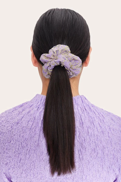 We’re bringing our A-game when it comes to hair accessories this season and this embroidered scrunchy from Stine Goya more than makes the cut. Featuring a subtle lace-style pattern in lilac and a colourful seam detail, it’s perfect for embellishing a sleek ponytail or simply show it off around your wrist. One size – 12cm diameter 40% Polyamide, 40% Polyester, 20% Cotton Machine wash on delicate cycle. Do not tumble dry. Made in China SG4133 2018