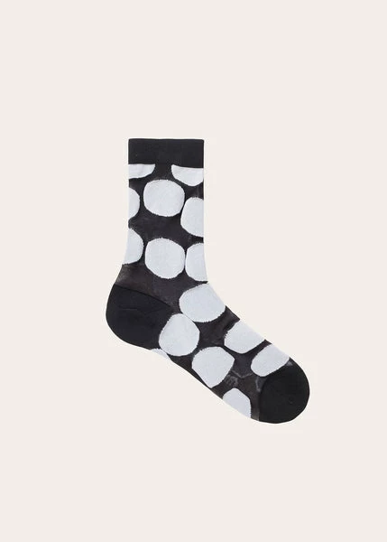 STINE GOYA Tilly Socks – Small Dots Tilly Socks in Small Dots. Durable crew socks with semi-transparent pattern, elasticated cuff and heel and toe reinforcements. For the Pre-Fall 2022 collection, Stine Goya offers a celebration of authenticity and unapologetic self-expression. Inspired by American artist Kerry James Marshall, YOUR FREEDOM – MY LOVE is enriched with modern adaptations of timeless shapes and styles through bold patterns, bright colours, and a fierce sense of individuality. ONE SIZE FITS SIZE 36-41 100% POLYAMIDE MACHINE WASH MADE IN PORTUGAL Style ref: SG4303