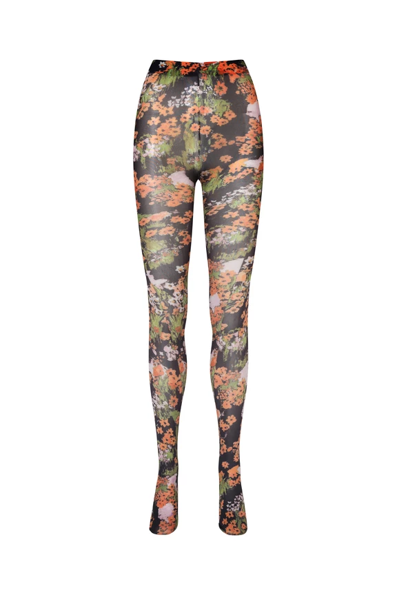 Vero Stockings in Artist Canvas . High-waisted stockings with elasticated waist. Detailed floral pattern on semi-sheer material.