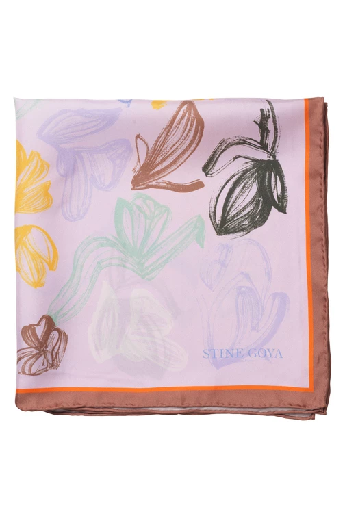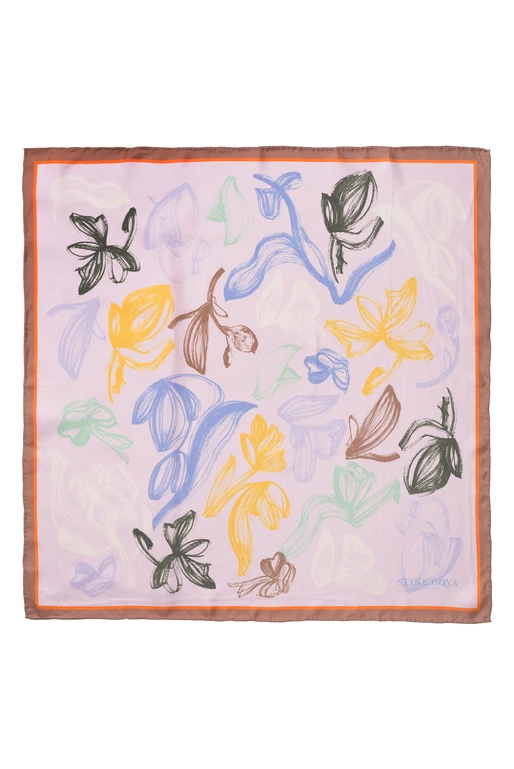 Yumma Silk Scarf in Stroke Flower. Sophisticated square scarf with detailed floral pattern and monochromatic border. Made of 100% Silk.